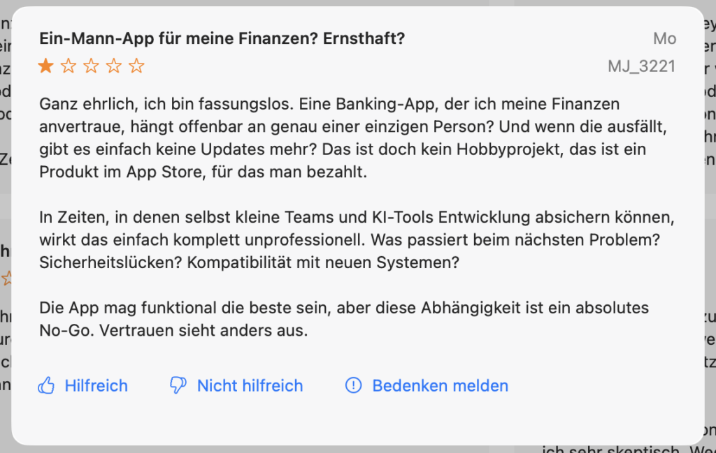 Wir brauchen uns dann nicht zu wundern, wenn sich immer mehr Entwickler zurückziehen und Software nur noch von großen IT-Unternehmen stammt, die sie dann im Abo-Modell mit massivem Datentracking und schlechtem Support anbieten.